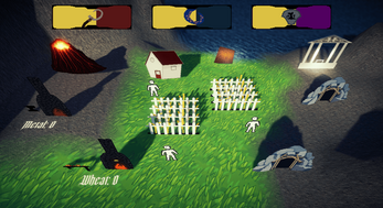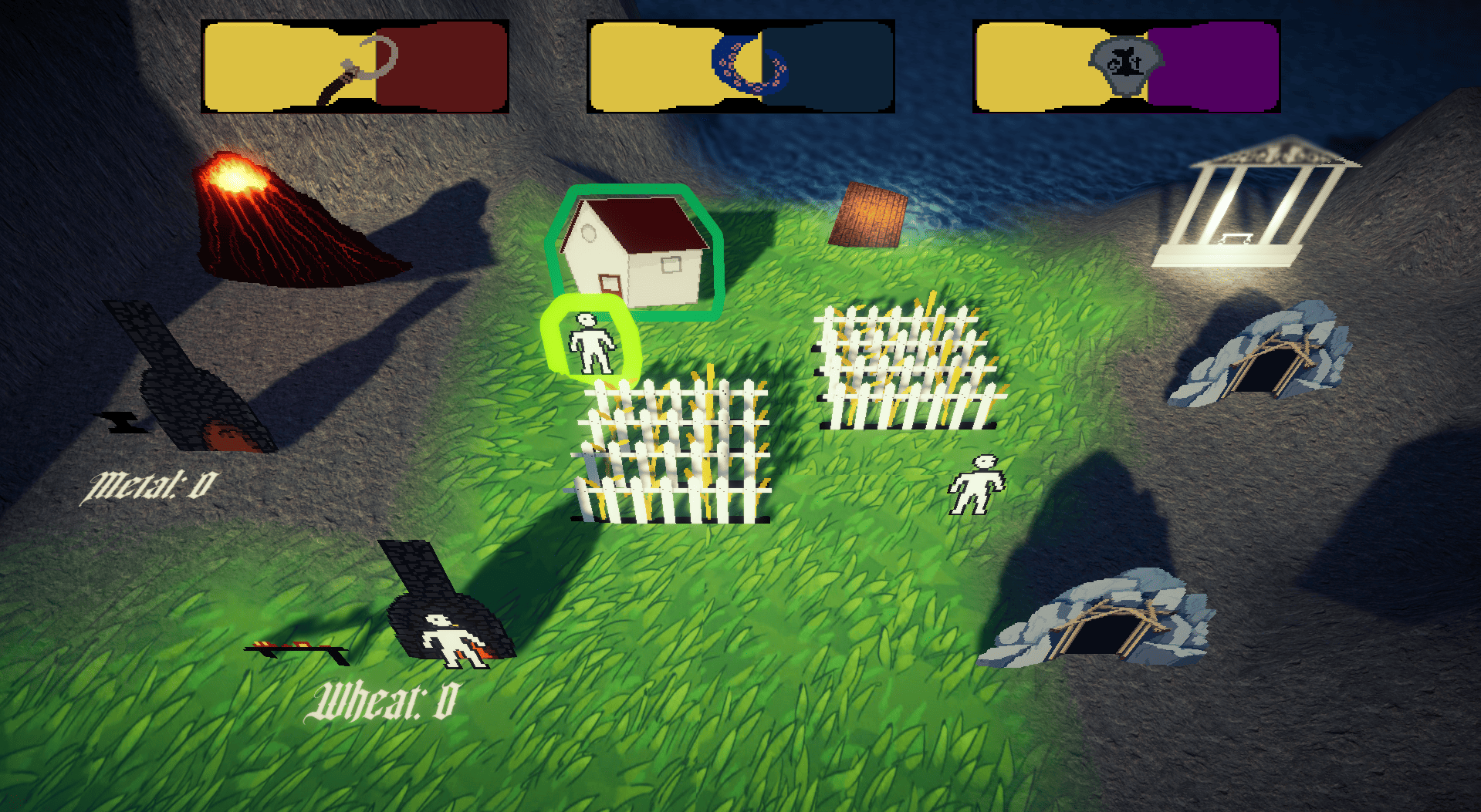 Click on any onscreen character to command them, then click a destination to lead them around. They can work at several stations, or make sacrifices at any of the three altars. Keep the gods pleased with sacrifices, or they will destroy you in a fit of rage!